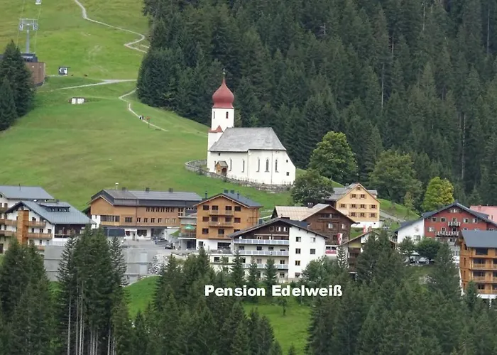 Pension Edelweiss Damuels har utsikt över trädgården och ligger cirka 5 minuter till fots från Oberdamuls i Damuels. I hela boendet finns Wi Fi.